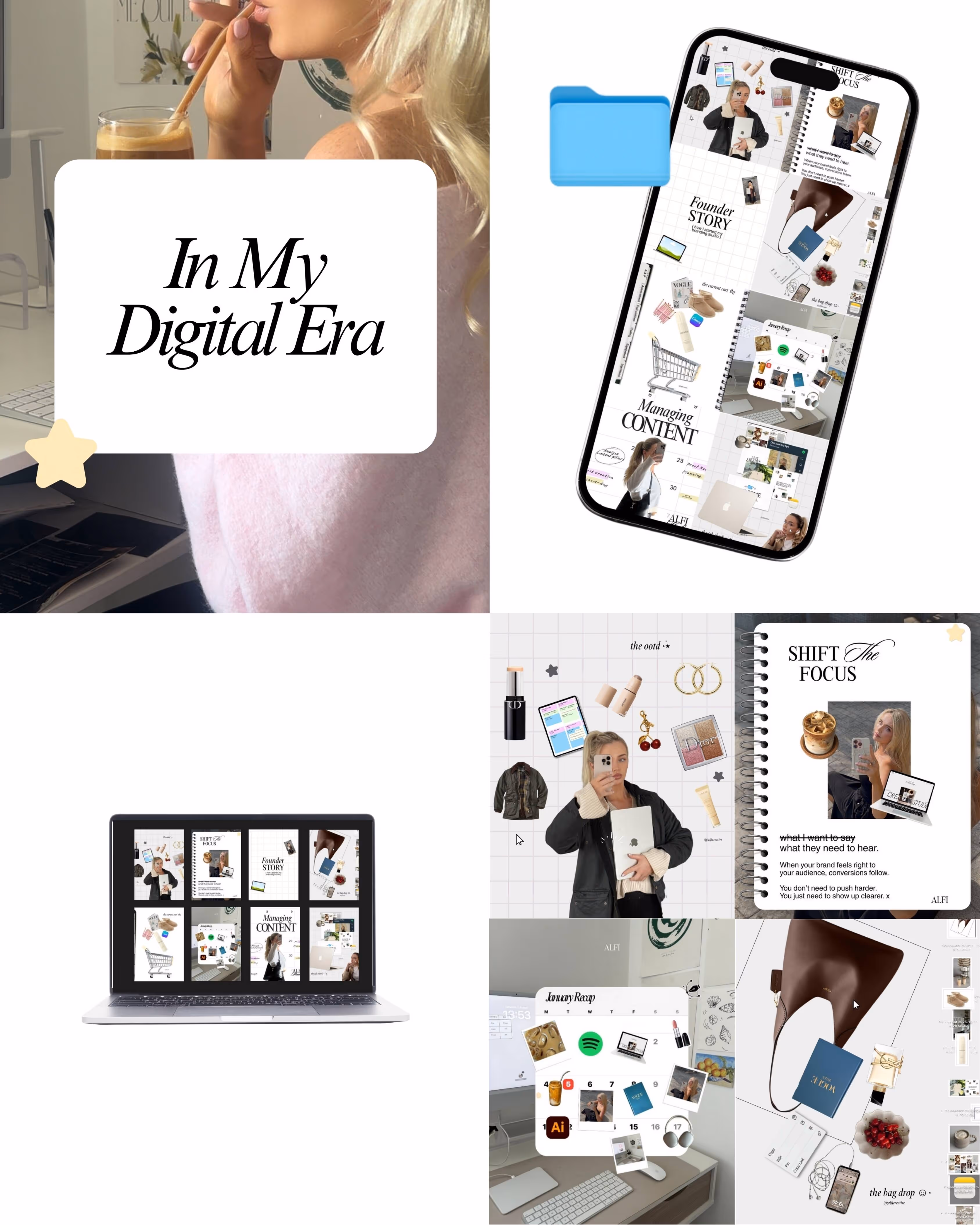 Designed for it-girl creators, social media marketers, and anyone building a brand in the online space. Brief; Think clean-girl polish with playful, refined energy that feels confident, current, and effortlessly elevated.